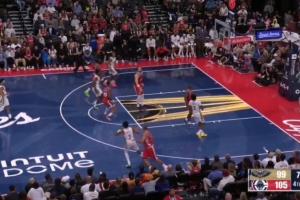 下一篇: 卡梅隆-约翰逊上篮被卡马拉排球大帽扇飞,球直接飞向观众席。