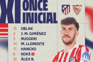 体育资讯11月1日讯 西甲第11轮,马竞主场对阵塞维利亚。赛前,官方公布了本场的首发名单。