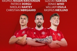 后卫:韦斯特高(莱斯特城)、安诺森(富勒姆)、克里斯滕森(巴萨)、霍斯贝里(斯特拉斯堡)、维克托-尼尔森(维罗纳)、拉斯穆斯-克里斯滕森(法兰克福)、多尔古(曼联)