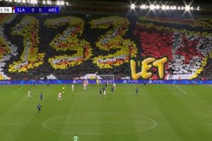 体育资讯11月05日讯 欧冠阿森纳vs布拉格斯拉维亚,斯拉维亚本周庆祝建队133周年,球迷展示巨型tifo。