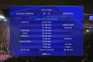 以下为阿森纳球员本场跑动数据榜: