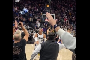 赛后,威少转发了自己和场边球迷庆祝的视频,并写道:“Why not(威少名言)?!”