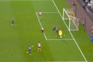 比赛第85分钟,桑德兰进攻,拉亚扑出布罗比的近距离射门后“脱线”没能找到足球,随后在加布里埃尔的提醒下将球没收!