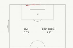 迪亚斯底线极限救球后,丝滑过人,小角度劲射死角。这里进球的预期进球(xG)仅0.03,射门角度1.8°。
