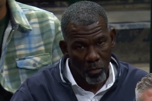 比赛中镜头捕捉到独行侠名宿、临时管理层迈克尔·芬利来到现场看球。