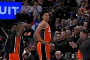 GIF-乔丹·米勒助攻科比·桑德斯三分打停掘金