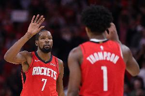 谈到和杜兰特搭档,他说:“这确实是一种全新的体验。你知道,当你看到KD时,他能在任何人头上得分。你只想把球传给他,让他去得分。但他真的很善于赋能队友,当他被严防时,他会对我说,‘只管冲,他们防不住你。’”