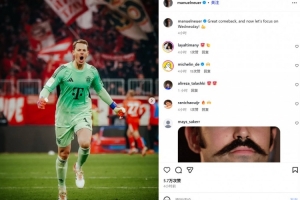 诺伊尔晒出自己的庆祝照,并配文:“伟大的逆转!现在让我们专注于周三的比赛!”
