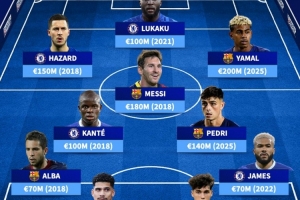 全文摘要:《转会市场》为巴萨与切尔西的欧冠战,列出两队历史最贵阵容。该阵总身价超10亿欧元,包含梅西、坎特等巨星,以及当今身价最高的亚马尔和佩德里。这套梦幻阵容汇集了两队巅峰时期的顶尖球员,堪称星光熠熠。