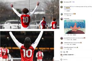 阿森纳青训小将Luis Muñoz在社媒发布了自己和埃泽身穿10号球衣庆祝的照片,配文:@埃泽 我梦想着有一天,或许也能像你一样🙌🙌🙌#letitallworkout