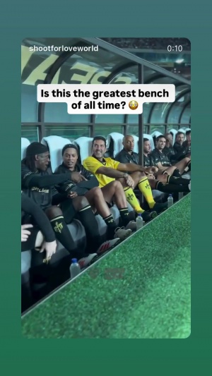 替补席包括施魏因斯泰格、贝尔、鲁尼、小罗、布冯、德罗巴、亨利、卡卡、阿扎尔、杰拉德等众多足坛传奇。