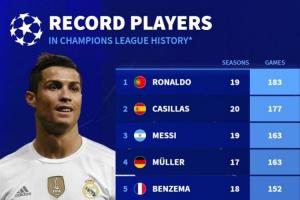 1、C罗:19赛季 183场