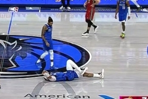 GIF-加福德补篮过程中受伤,倒地缓了好一会儿走回更衣室