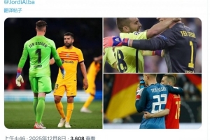 体育资讯12月8日讯 特尔施特根更新社媒动态,祝福结束职业生涯的老队友阿尔巴。