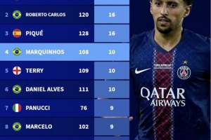 全文摘要:德转数据显示,自92-93赛季以来,欧冠后卫进球榜中,拉莫斯以142场17球高居榜首。卡洛斯与皮克同以16球并列第二,马尔基尼奥斯、特里和阿尔维斯以10球紧随其后。