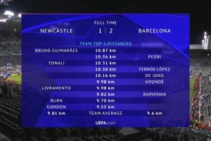 全文摘要:欧冠纽卡1-2惜败巴萨。赛后跑动数据显示,纽卡球员吉马良斯以10.87公里居首,佩德里以10.56公里紧随其后。全队跑动方面,纽卡平均9.81公里,略高于巴萨的9.6公里,展现了积极的拼抢态度。