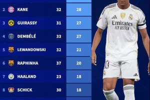全文摘要:2025年,皇马球星姆巴佩状态出色,以37场35球领跑五大联赛射手榜。凯恩、吉拉西、登贝莱分列二至四位,莱万、哈兰德等知名球员也跻身前十。
