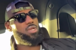 湖人球星詹姆斯更新IG动态,在前往比赛的路上,他在车中随着音乐摇头晃脑,神情愉悦。