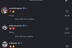 贝林厄姆、库尔图瓦、居莱尔等皇马队友为迪亚斯留言点赞。