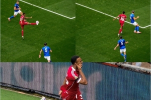 本场比赛第10分钟赫拉芬贝赫接萨拉赫传球打进精彩凌空抽射,利物浦官推也晒出这粒进球过程的照片,配文:“艺术!”