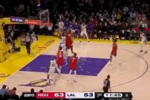 下一篇: 杜兰特与小贾巴里连续命中三分,火箭队凭借此波攻势领先17分,迫使湖人队请求暂停。