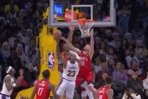 下一篇: 詹姆斯弧顶假动作晃飞防守,轻松上篮得分。